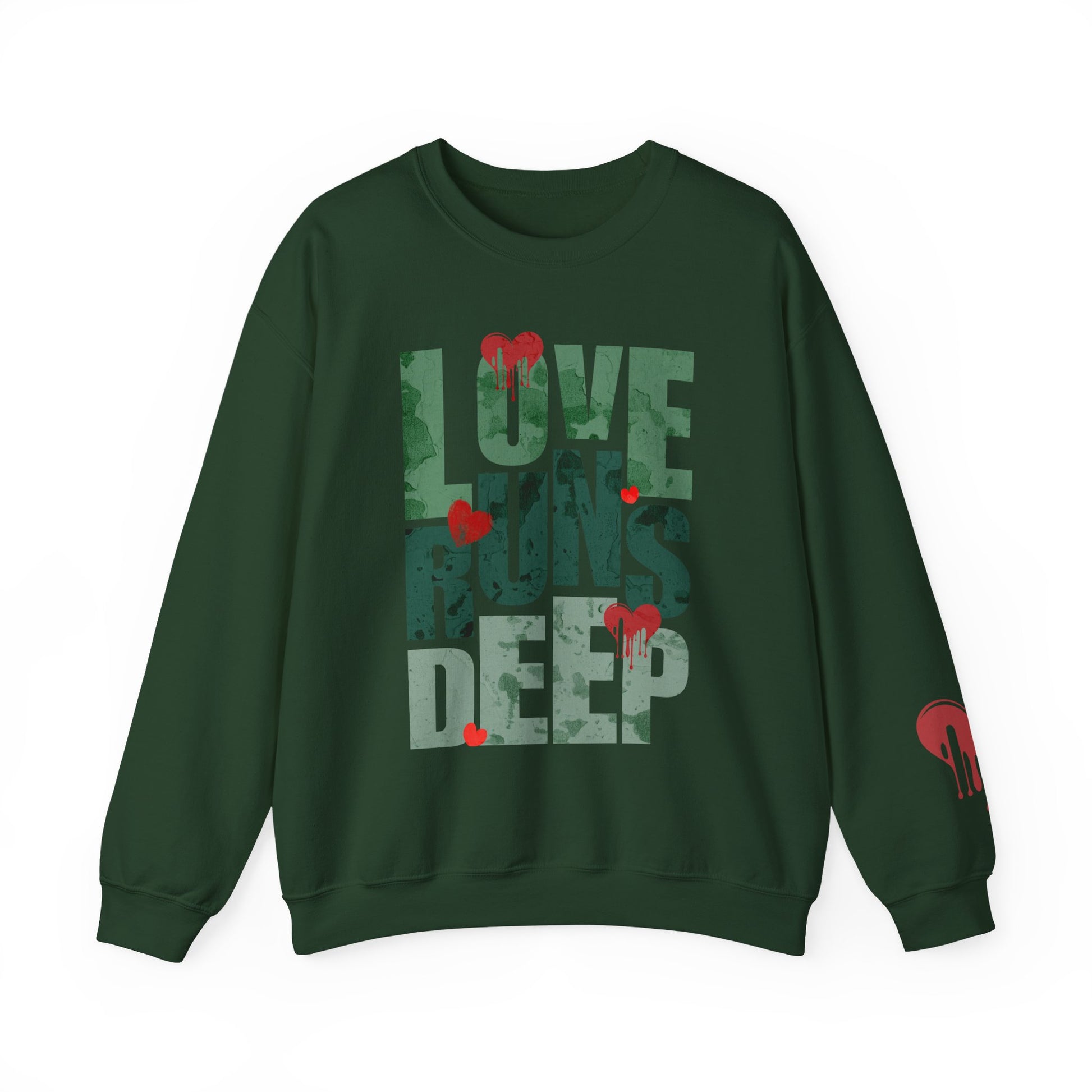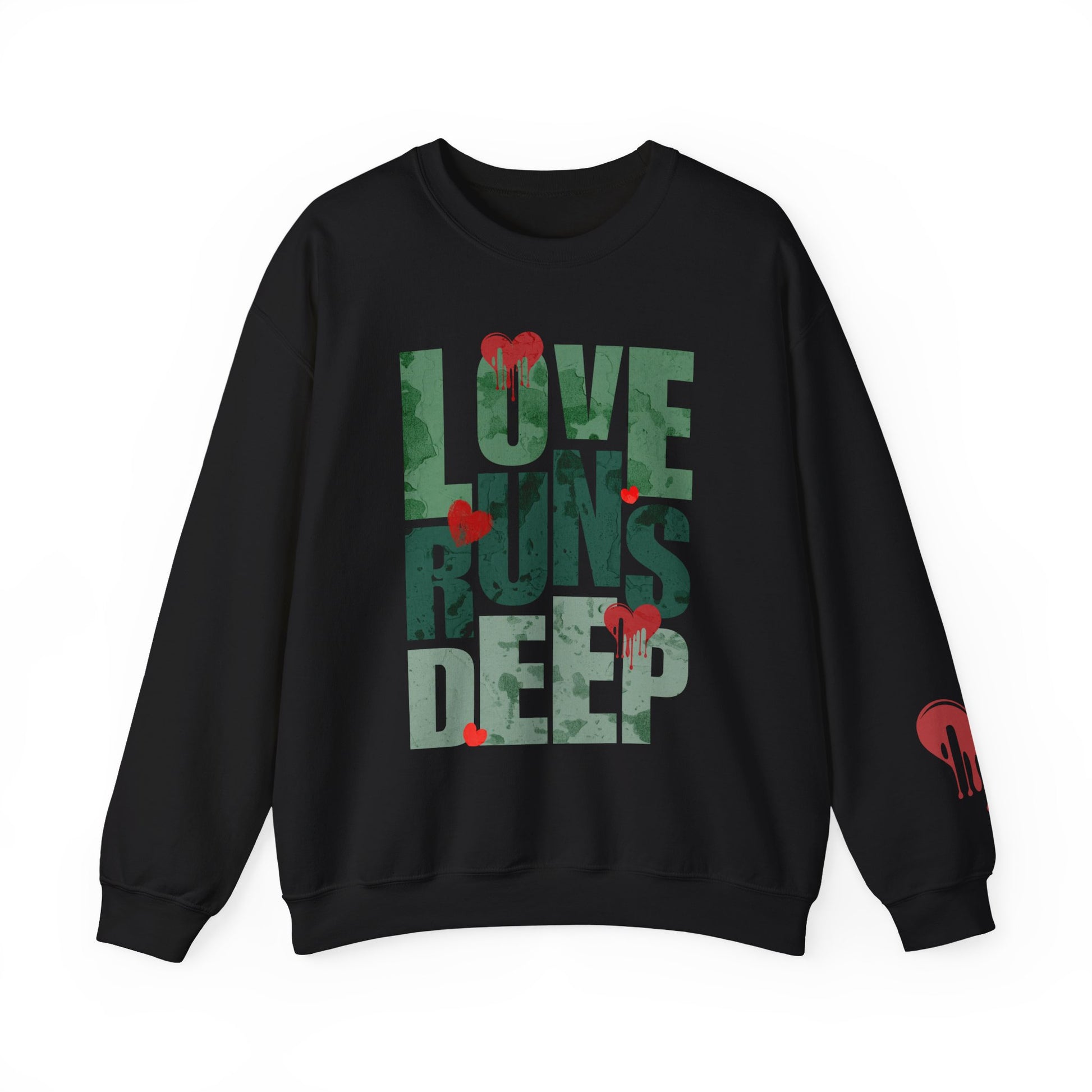 Crewneck Sweatshirt — "Love Runs Deep" Heart Graphic Valentine Pullover